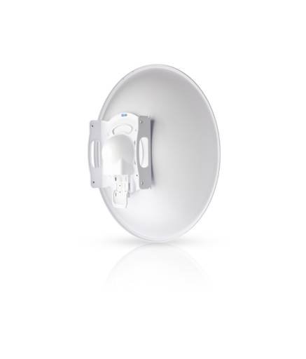 Optimiza tus enlaces PtP con la antena airFiber 5 GHz 30 dBi Slant 45, diseñada para ofrecer máximo rendimiento, aislamiento de ruido y alta eficiencia en backhauls.