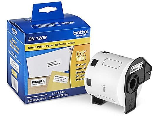 rother DK1209. Color del producto: Blanco, Tipo de etiqueta: DK. Dimensiones (Ancho x Profundidad x Altura): 62 x 29 x 0 mm, Tamaño de etiqueta: 1-1/7" x 2-3/7". Etiquetas por paquete: 800 pieza(s)Compatible con:Brother QL-1050, Brother QL-1060N, Brother QL-1100, Brother QL-1110NWB, Brother QL-500, Brother QL-700, Brother QL-710W, Brother QL-720NW, Brother QL-800, Brother QL-810W, Brother QL-820NWB, Brother QL-1050N, Brother QL-550, Brother QL-570, Brother QL-570VM, Brother QL-580N, Brother QL-650TD