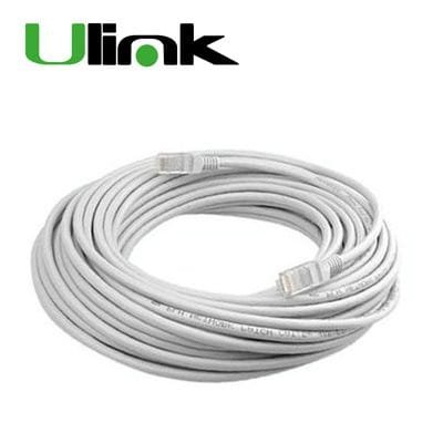 Cable de red tipo Patch Cord UTP Cat5e de 15 metros de longitud, color gris. Ideal para conexiones de alta velocidad en redes domésticas o empresariales, permitiendo una transmisión confiable de datos en aplicaciones de hasta 100 MHz.